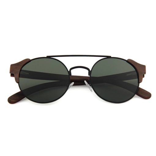 Walnut wood and metal frame with walnut wood arms and spring hinges with Smoke polarized lens ~ Inspired by Africa.