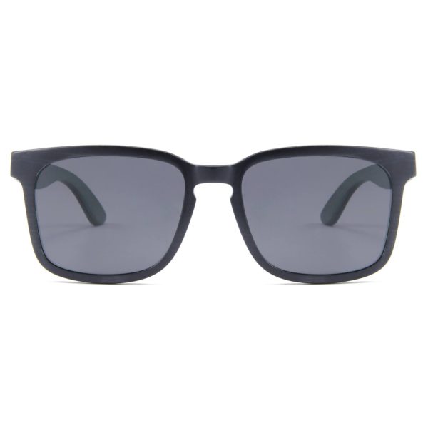 Black Skateboard wood frame and arms and green accents with spring hinges, and Smoke grey polarized lenses ~ Inspired by Africa.