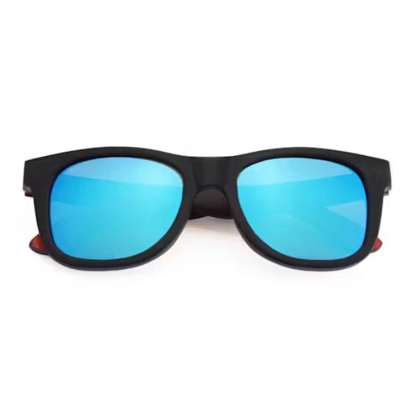 Black Skateboard wood frame and arms with spring hinges and Mirrored Blue polarized lenses ~ Inspired by Africa.