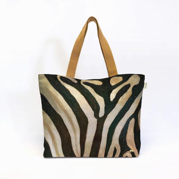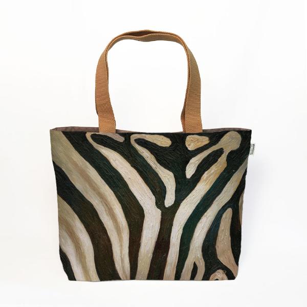 100% Cotton canvas handbag featuring ‘Boutique Zebra’ from the ‘Boutique Collection’ range. This everyday carryall tote is a gorgeous classic zebra print originally painted in oils on canvas by South African artist Dezireë Smith.