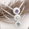 Grey freshwater Ostrich eggshell pearl set in hook and eye bangle in Sterling Silver