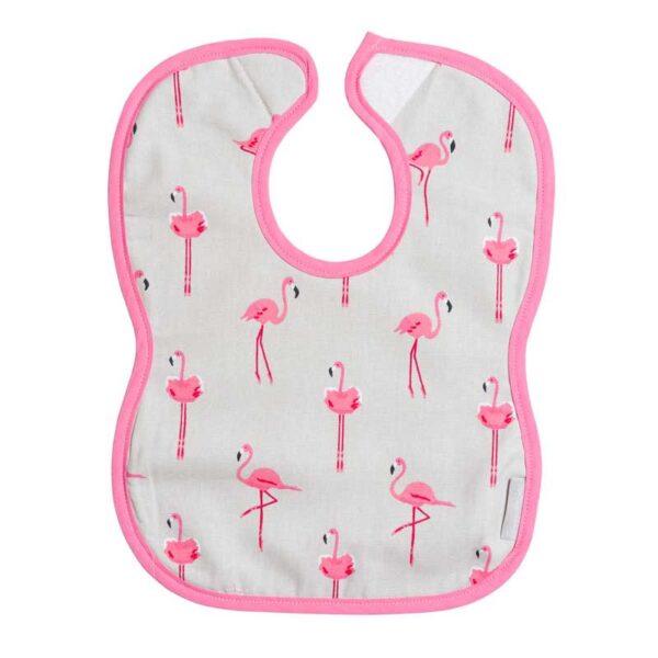 Make feeding time fun and playful with this practical bib in our pink Flamingos design. Suitable for babies and toddlers from 6 months old.