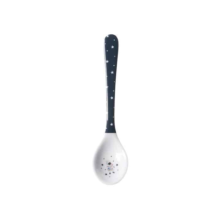 Brighten up mealtimes with this fantastic farmyard melamine spoon, with a striped blue handle. Sophie’s illustration of a tractor sits at the bottom of the long handle, which allows you to easily reach the bottom of food jars.
