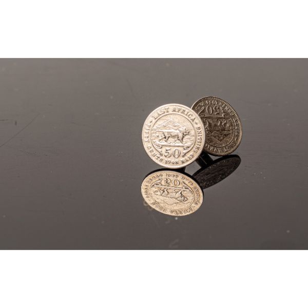 Brass silver plated cufflinks with Old British E. African 50 Cent coin