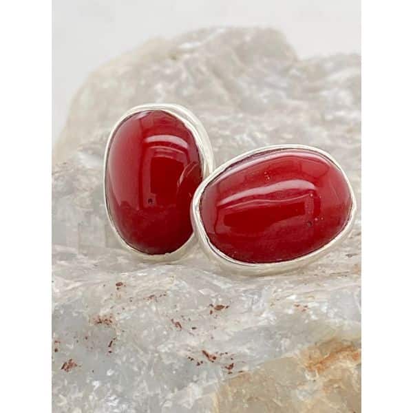 Red ‘African Amber’ Bezel Set Sterling silver Studs