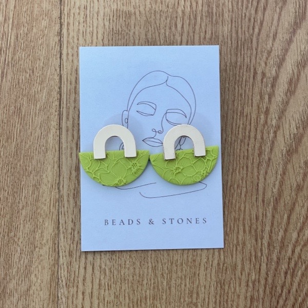 Clay earrings with gold plated brass component.