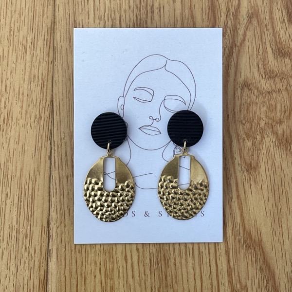 Clay earrings with brass component.
