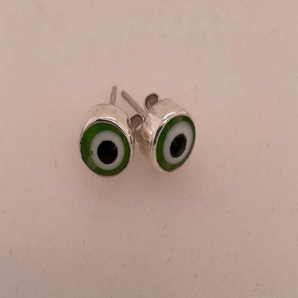 Lime green “evil eye” bead earring studs set in Sterling Silver