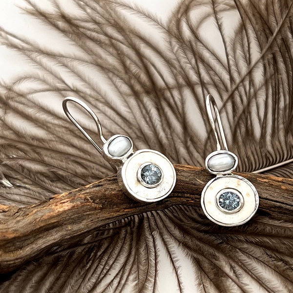 Pearl and 0.87cts Grey Spinel set in Ostrich eggshell and handmade Sterling Silver