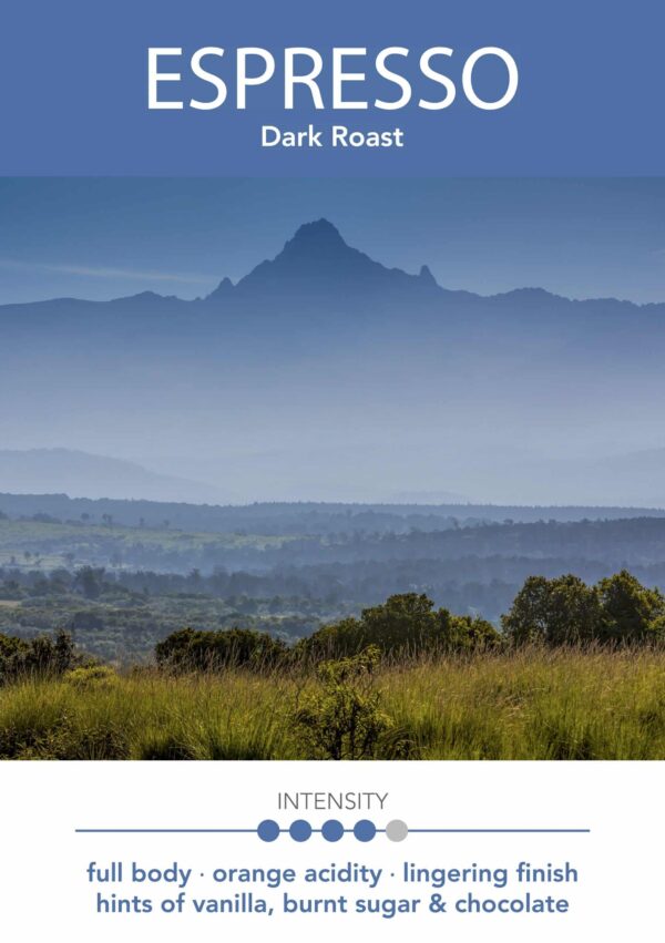 Edmax Coffee’s Espresso Roast is a meticulously crafted blend, showcasing the artistry of Kenyan coffee. The experience begins with a visually appealing velvety crema, highlighting the quality of beans and precise roasting. Sipping reveals a bold dark chocolate essence, expertly enhanced through careful roasting, offering a luxurious and satisfying taste. Subtle citric hints follow, adding brightness and complexity to create a well-balanced and dynamic flavor profile.