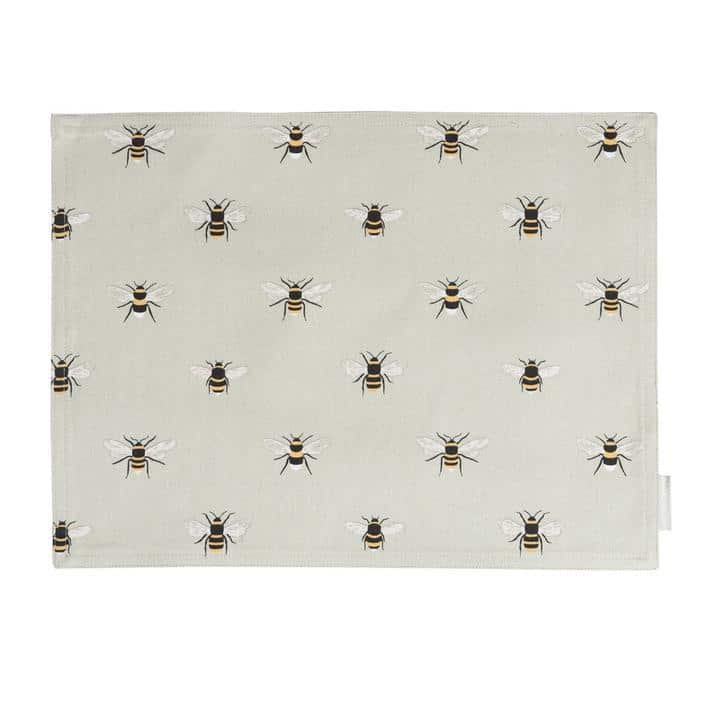 Decorate your dining or kitchen table with these lovely fabric placemats in our pale green Bees design. A stylish neutral print that will coordinate with most interiors.