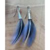 Small gold cone earrings with brown and white pheasant feather over small black and white dotted guinea fowl feathers