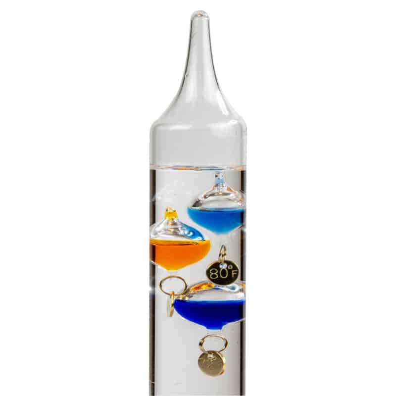 A classic science tool that will tell you the temperature and look great whilst doing it. 5 coloured liquid-filled teardrops marked between 18-260C rise or fall depending on the temperature. The lowest floating ball shows the current temperature.