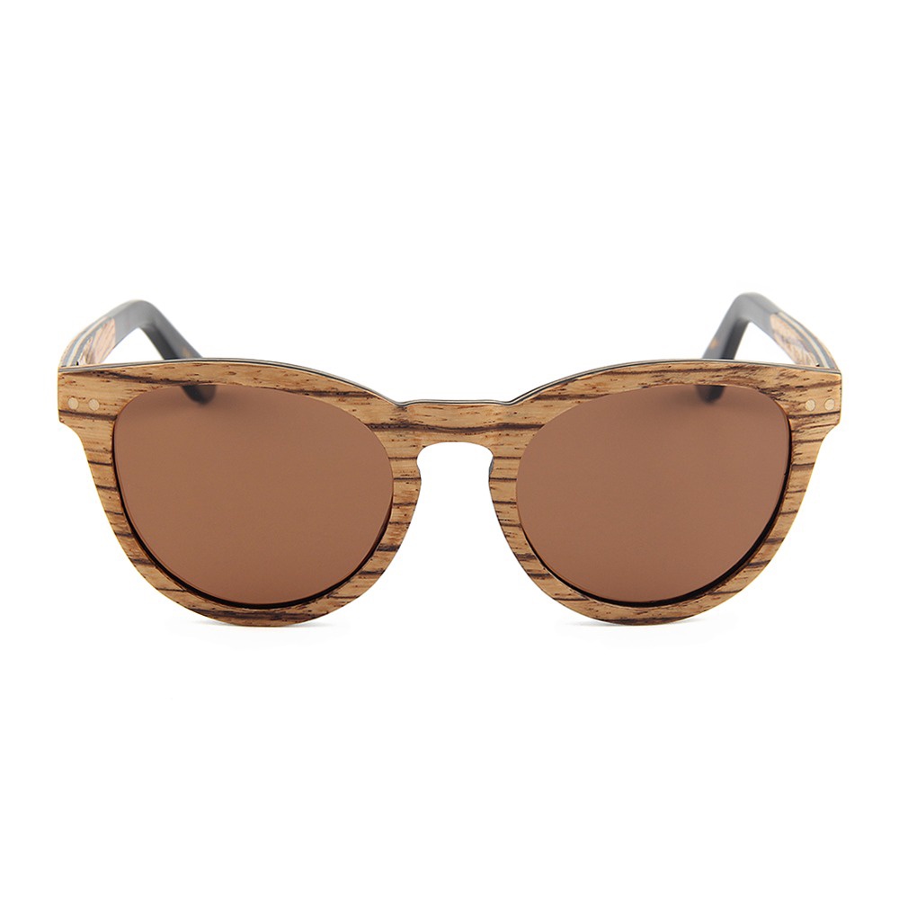 Zebra Skateboard wood frame and arms with Acetate tips and Brown polarized lenses ~ Inspired by Africa.