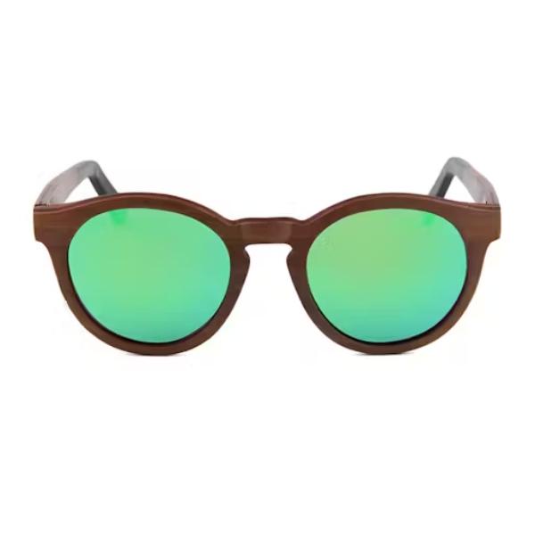 Walnut skateboard wood frame and arms with acetate tips and Green reflective polarized lenses ~ Inspired by Africa.