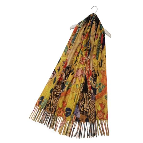 Colour: Mustard Size: 70 x 180cm (Approximately) Material: 40% Cotton 60% Viscose Indulge yourself in the beauty of impressionist art with our Klimt Portrait Of Adele Print Scarf. This scarf is smooth to the touch, providing you with a comfortable and elegant wearing experience. The gold print adds a touch of glamour and sophistication to any outfit. This scarf is the perfect accessory for anyone who appreciates fine art ,also it is a perfect gifts to your family & friends.