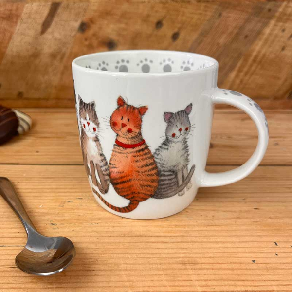 Perfect for coffee, tea and other hot drinks. Features illustrations around the inside rim and down the handle.