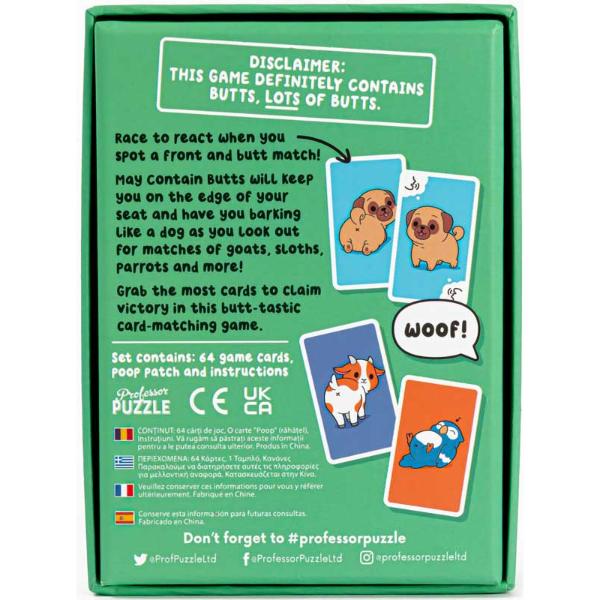 Race to react when you spot a front and butt match! May Contain Butts will keep you on the edge of your seat and have you barking like a dog as you look out for matches of goats, sloths, parrots and more! Grab the most cards to claim victory in this butt-tastic card-matching game.