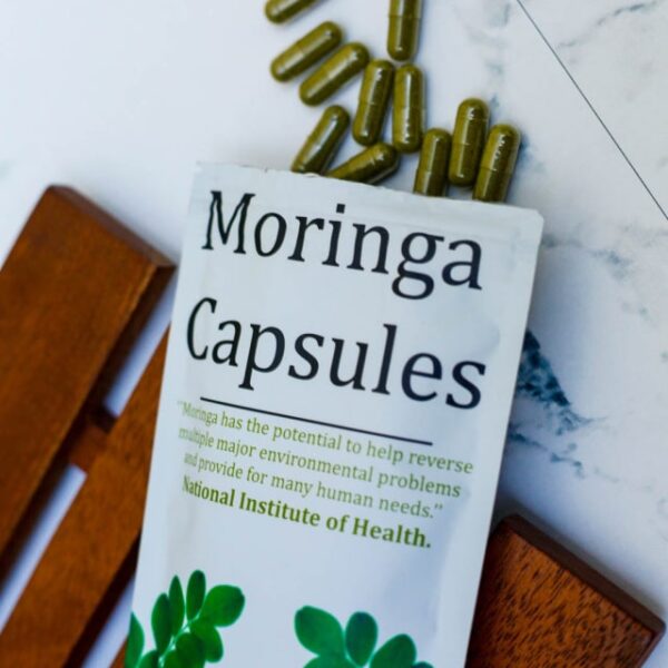 The wonderful properties of moringa leaves are expanded with dried baobab fruit powder, rich in antioxidants, especially vitamin C. Baobab powder is also rich in potassium and it contains good amounts of calcium, magnesium, and protein, as well as a good source of fiber, which acts as a prebiotic, helping to maintain healthy bacteria in the gut.