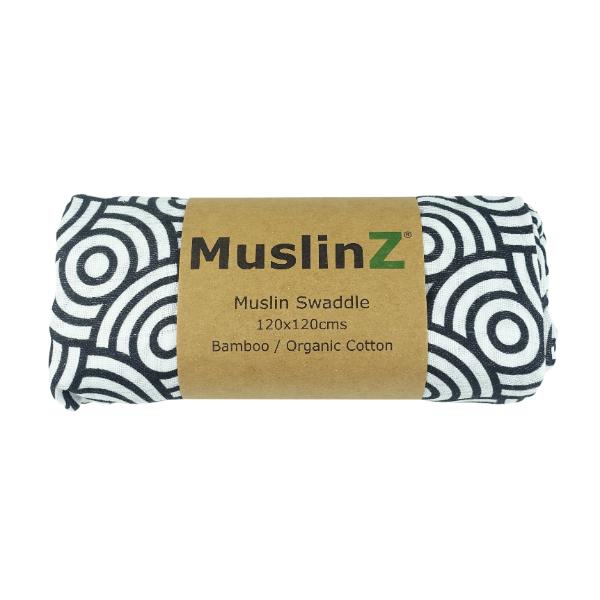 Introducing the MuslinZ Black Swirl Bamboo Swaddle Blanket, meticulously crafted from a blend of 70% bamboo and 30% organic cotton. This large 120cm x 120cm swaddle blanket combines the luxurious softness of bamboo with the added strength and durability of organic cotton. The result is an ultra-absorbent and wonderfully soft fabric that is gentle on your baby’s delicate skin.
