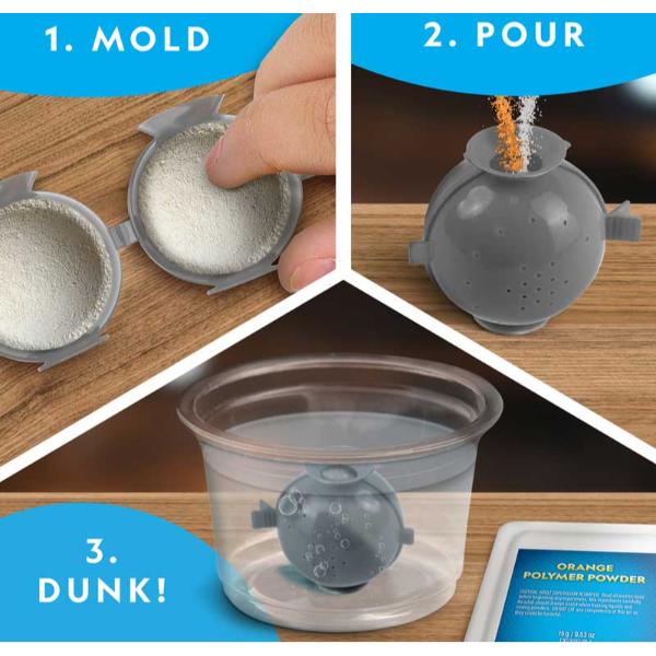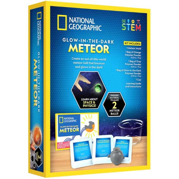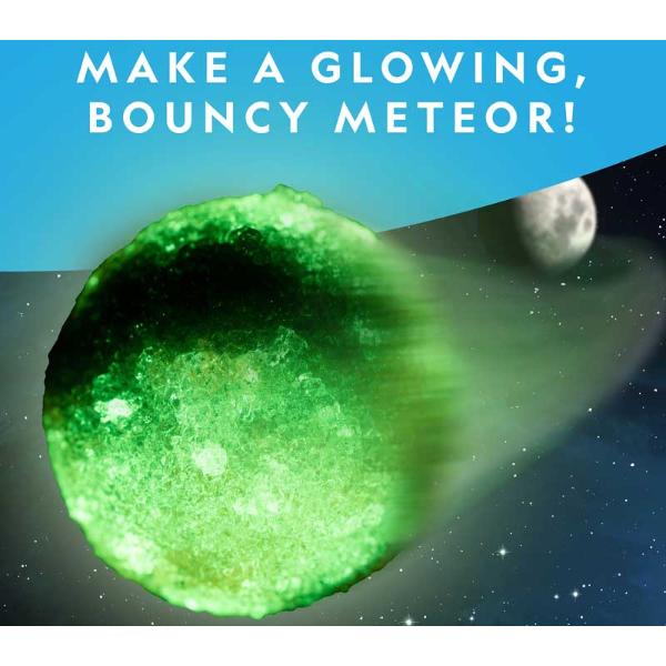 Kids will create their own glow-in-the-dark bouncy ball in this hands-on science kit. Simply pour the polymer powders into the mould and submerge it in water. Once the mixture sets, pop the meteor out it’s mould and you’ll have a real bouncy ball that also glows in the dark! Kids can use any light source from home to charge the meteor and make it glow in the dark. The meteor ball is 1.5†in diameter (3.8cm) Kids will get enough material to make two bouncy, glow-in-the-dark meteor balls. Once the mixture sets, kids will have a toy they can play with for hours.