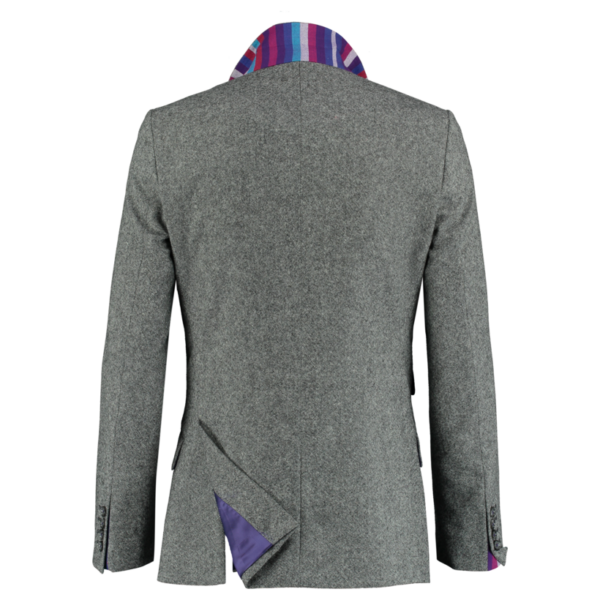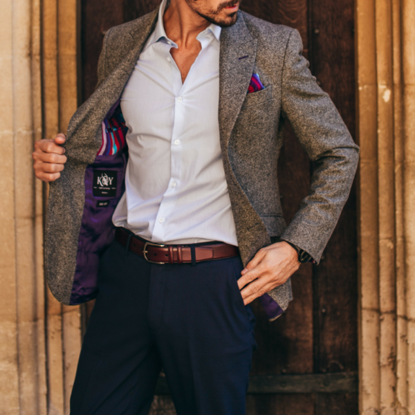 ‘NUSU’, means ‘half’ in Swahili, the national language of Kenya. This jacket is made from 100% pure British wool and includes subtle detailing of the authentic ‘Kikoy’ fabric from Kenya – Now featuring a pull out Kikoy pocket square.