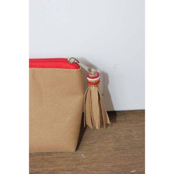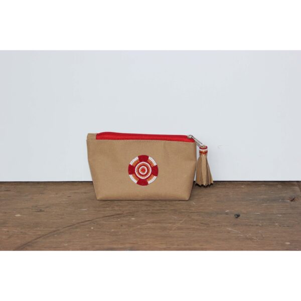 Made from a water proof wax coated Nylon Canvas, This sleek yet delicately beaded design provides easy transportation for your essentials whether on the road or catching a flight. These can be used are a make-up bag, medican, electronicses, ect. It can fit in any bag and can be take anywhereÂ