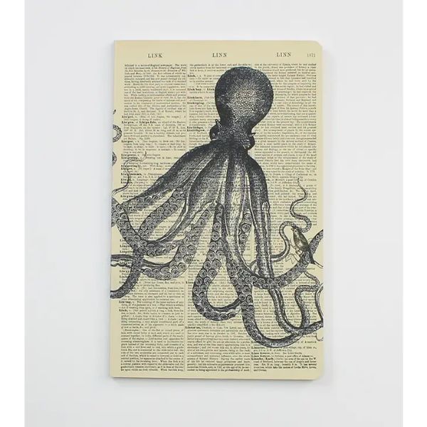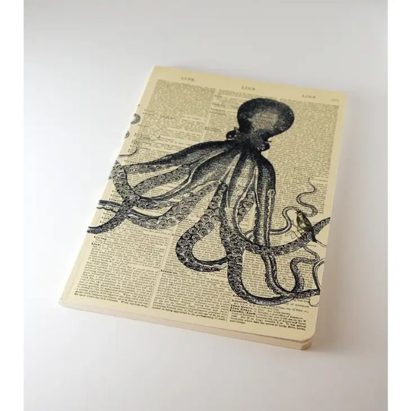 Unique notebook, sketchbook, approx. 36 sheets (72 pages) of plain and lined paper. Recycled paper cover. Dimensions: Length: 21 cm. Width: 13 cm.