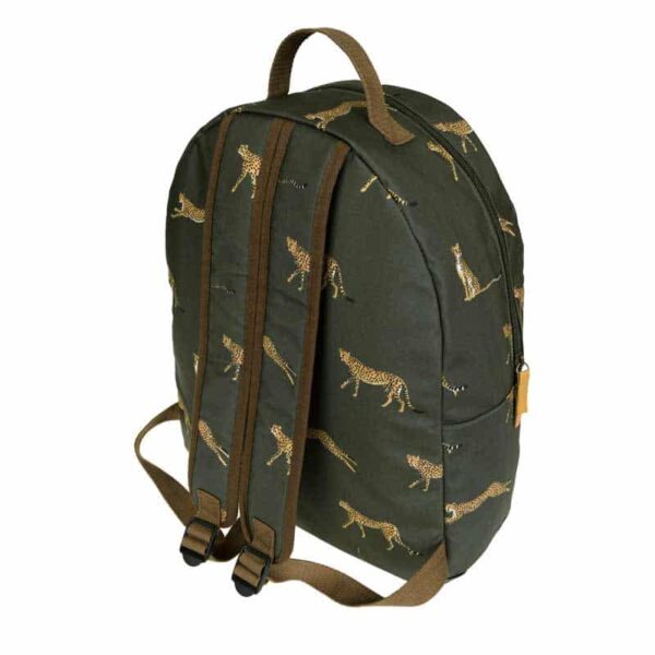 This stylish rucksack is perfectly practical for hitting the gym or commuting to work or school. Covered in our Cheetah design on a forest green background, it features a useful hanging look and front zipped pocket. Made from durable matt oilcloth, the rucksack has adjustable cotton woven shoulder straps for comfortable wearing.