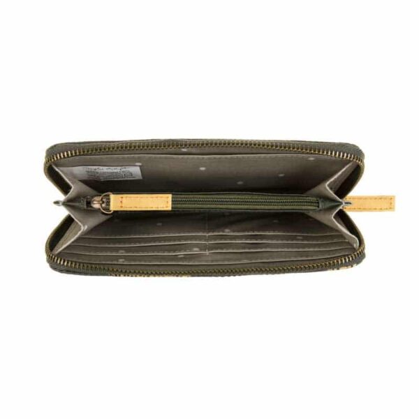 A gorgeous zipped wallet purse, made from our quality forest green Cheetah matt oilcloth. With six card slots and a zipped coin compartment, it’s a brilliant size to fit in all your cash and multiple loyalty cards!Â