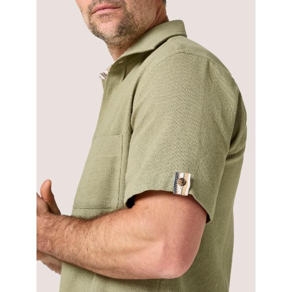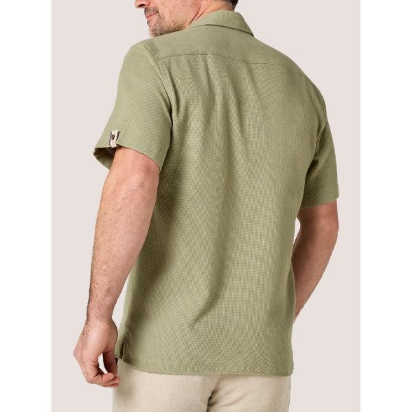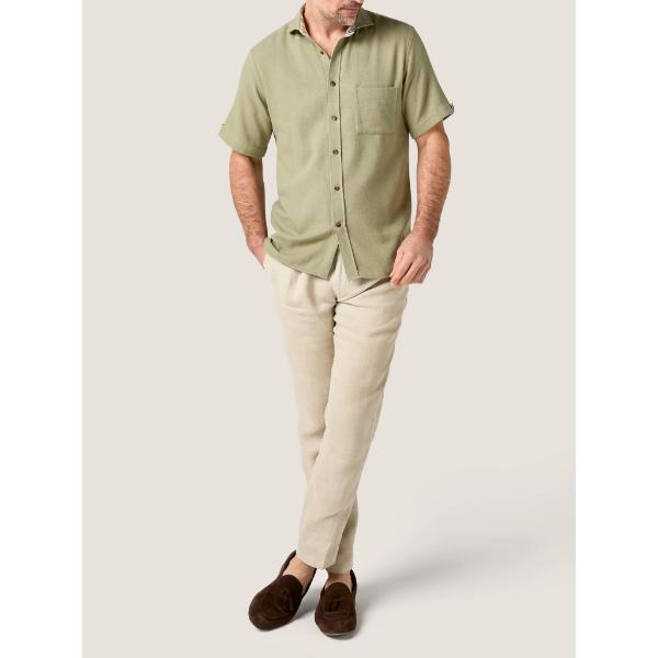 This Olive Short Sleeve Shirt is built for warm-weather ease without compromising refinement. The open-structured weave maximises airflow, allowing heat to escape while maintaining a clean, tailored silhouette.