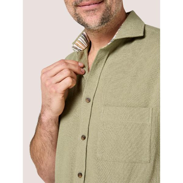 The olive tone offers a safari-chic look, while the subtle woven texture adds depth and character. Finished with our signature Kikoy detailing inside the collar stand, it carries the unmistakable Koy spirit.