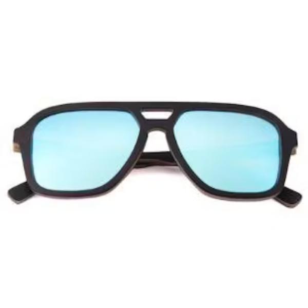 Ebony wood frame and arms with spring hinges, and Mirrored Arctic Blue polarized lenses ~ Inspired by Africa.
