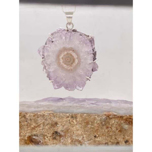 Sterling silver pendant featuring claw set Amethyst Stalactite from Uruguay (SMC00621, ss adj chain 24″)