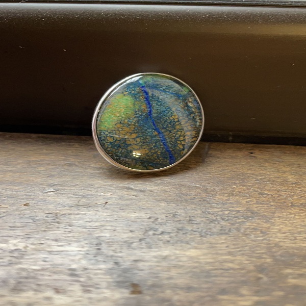 Unique natural fossilized Dino bone adjustable ring in sterling silver