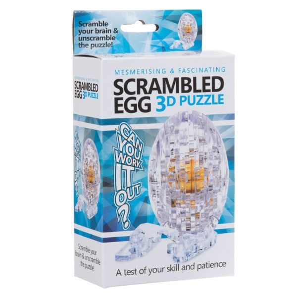 The 3D Scrambled Egg Puzzle will test your patience and brain power. Re-assemble the multi-layer crystal puzzle to form a perfect egg shape complete with a coloured 2-part yolk. It can then be displayed on the base unit as an object of curiosity or until you are ready to try again. Each packed in a colour box.