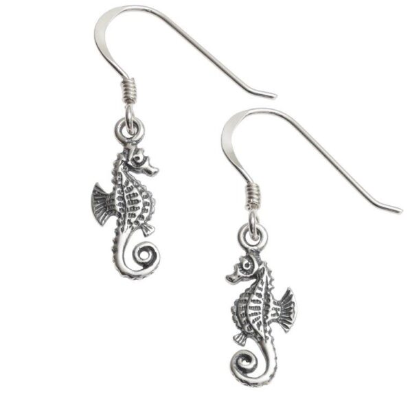 These Pretty Silver Seahorse Earrings are 3d double sided. They have lovely Detail & they are approx 3cm incl hooks.