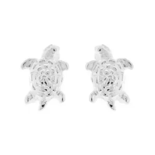 A sweet addition to our simply silver earrings range, featuring this pair of small turtle studs. Perfect as a gift for first time earrings! These earrings measure width 5mm, height 8mm, depth 2mm. All measurements are approximate and measured at widest/longest points. These are crafted in Sterling Silver.