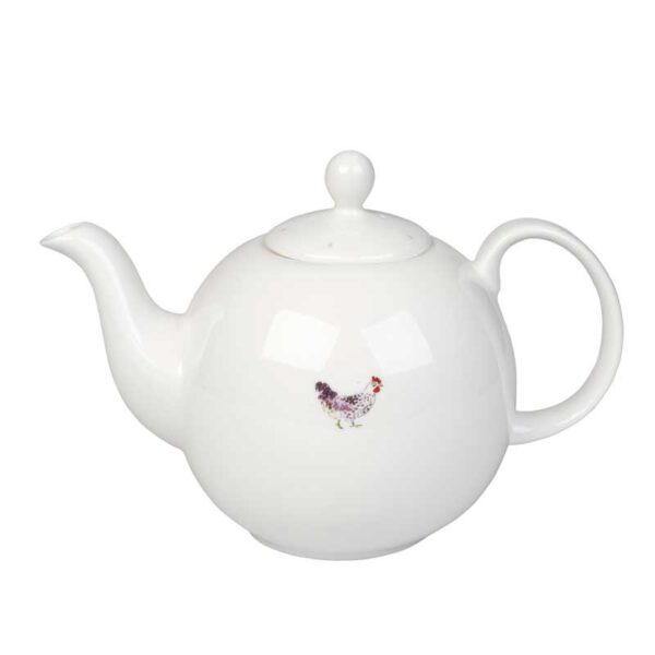 A simple design featuring a quirky hen on the front and back of this fine bone china white teapot. There are five pale grey eggs around the lid. It’s a great pourer and perfect for a truly indulgent cuppa. A stylish country design that would make a lovely gift for anyone who keeps hens.