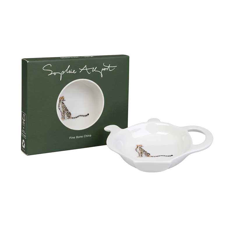 This fine bone china tea tidy features a handsome cheetah sat in the middle. A handy accessory to keep your kitchen tidy.