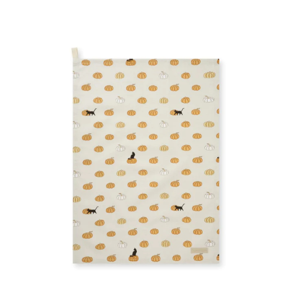 Add a spooky seasonal touch to your kitchen this Halloween with this practical 100% cotton tea towel in Sophie’s Trick or Treat design. Featuring hand printed golden orange pumpkins and sleek black cats that pop against the neutral backdrop, this tea towel is sure to complement any interior whilst giving your kitchen and dining space an autumnal feel.