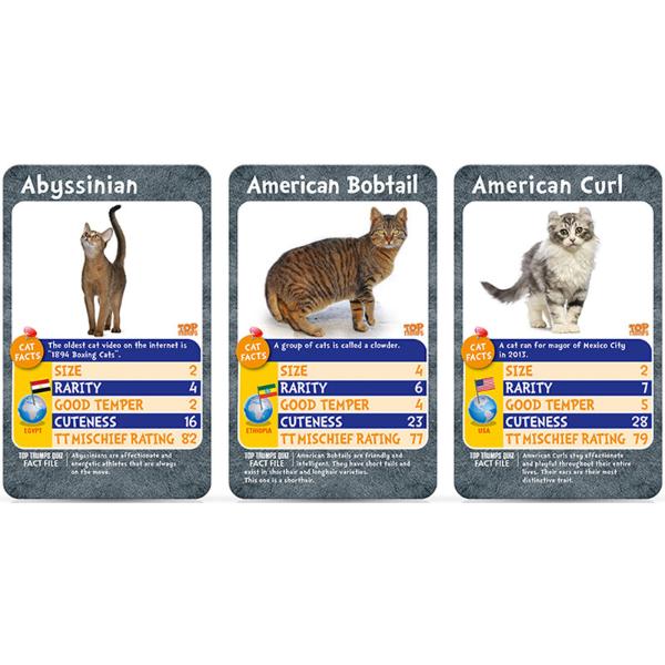 They come in all sizes and tempers but we dearly love our mysterious feline friends. Discover the most famous varieties of cats and see how the fiercest compares to the cuddliest and most mischievous. A furry deck full of surprising cat facts; find out all about your favourite kittens in this special Top Trumps pack!