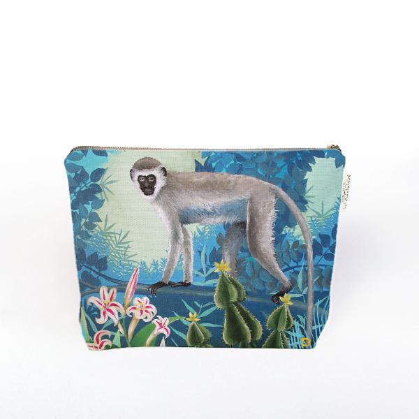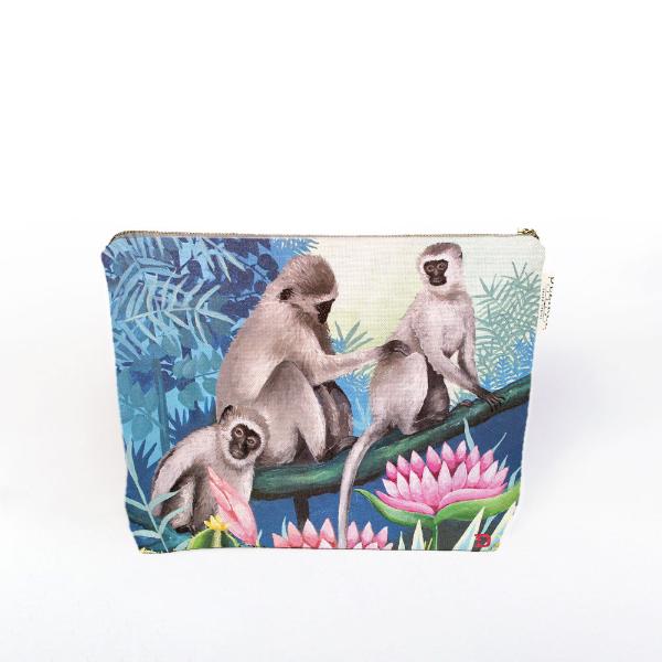 100% Cotton toiletry bag featuring ‘Pink Lotus’ from Deziree Fine Arts’ Vervet Monkey collection. The original painting was done in oils on canvas by South African artist Dezireë Smith.
